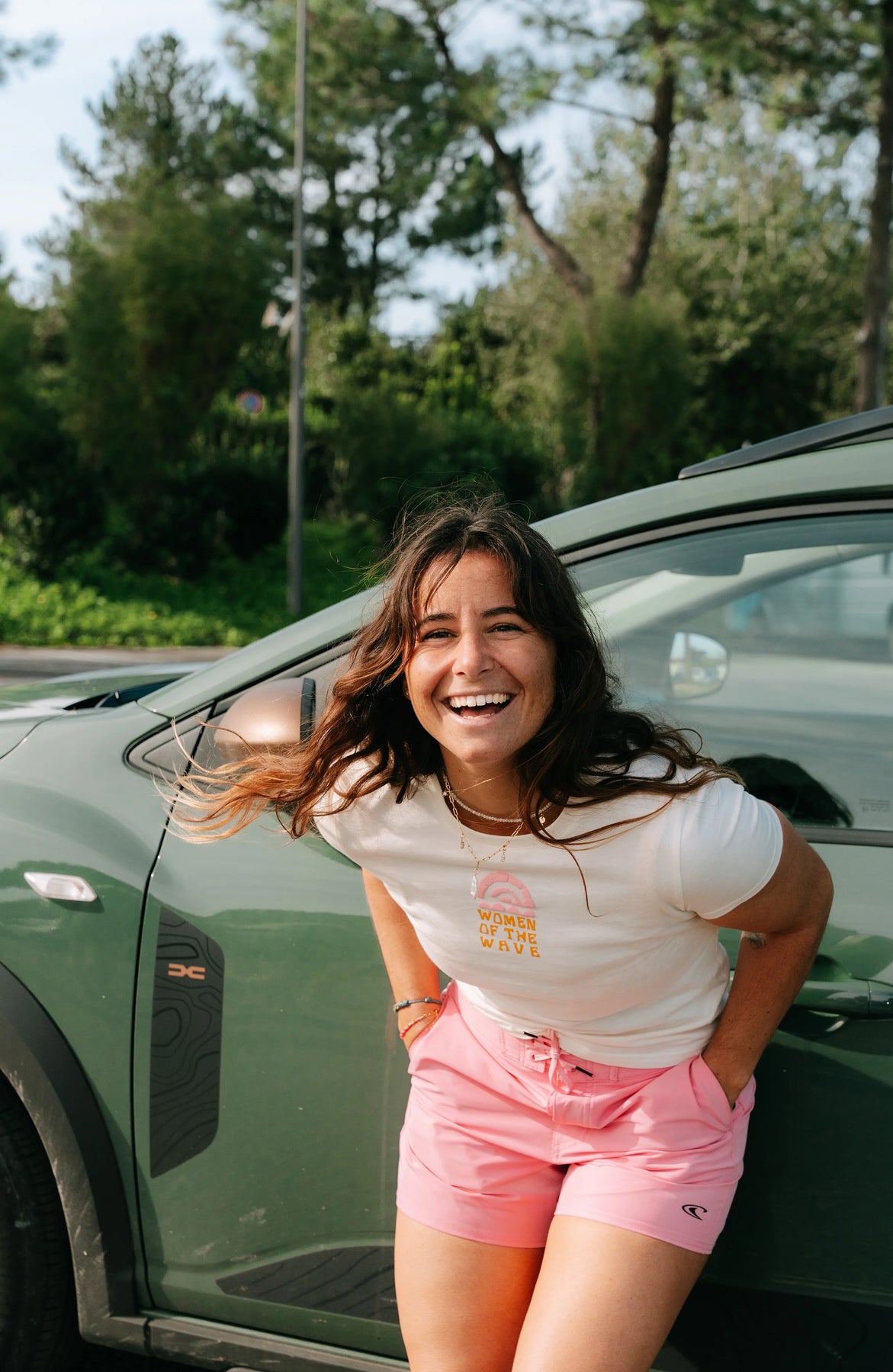 Made for sunny days and ocean energy. The Women of the Wave T-Shirt brings effortless style with a slim fit and slightly cropped cut that’s perfect for warm weather. Crafted from soft, enzyme-washed 100% cotton, it features a classic round neckline and unique artwork on the front and back — a true ode to wave chasers everywhere.